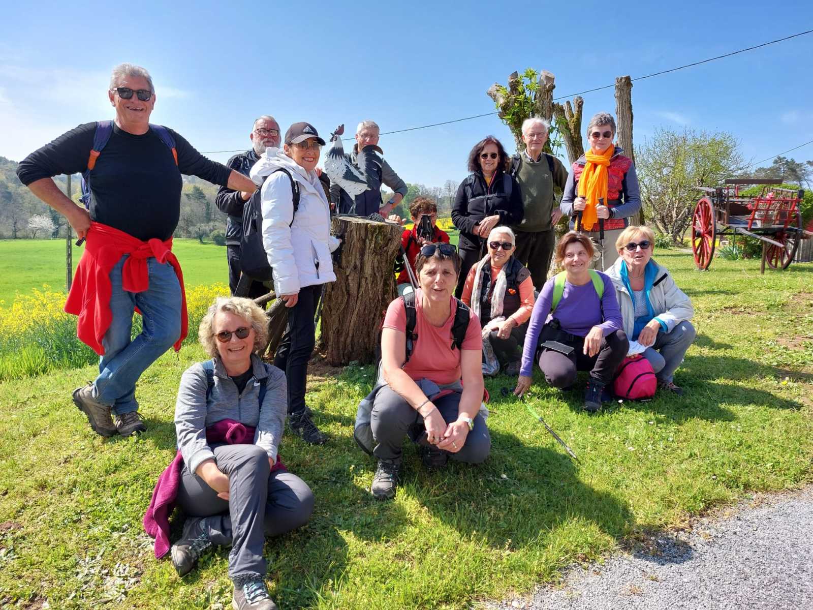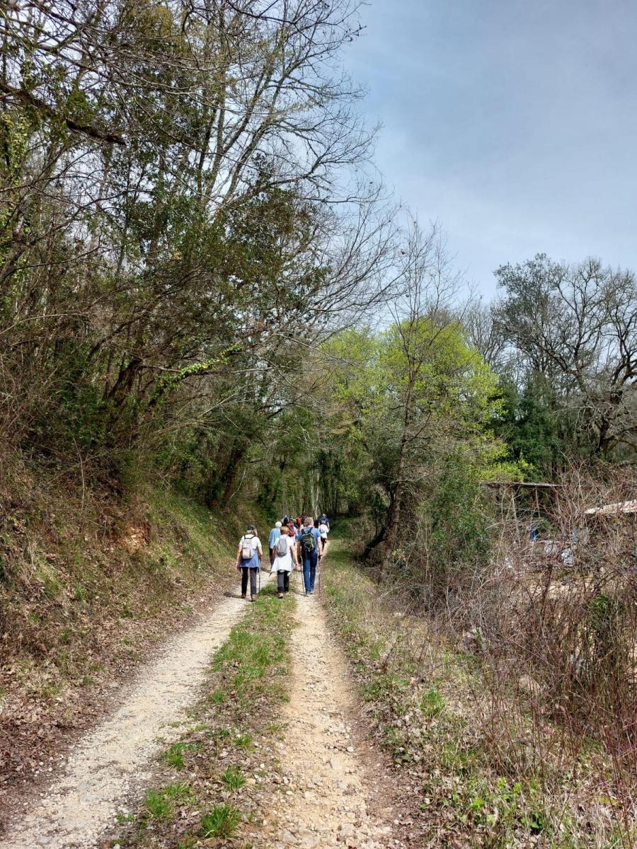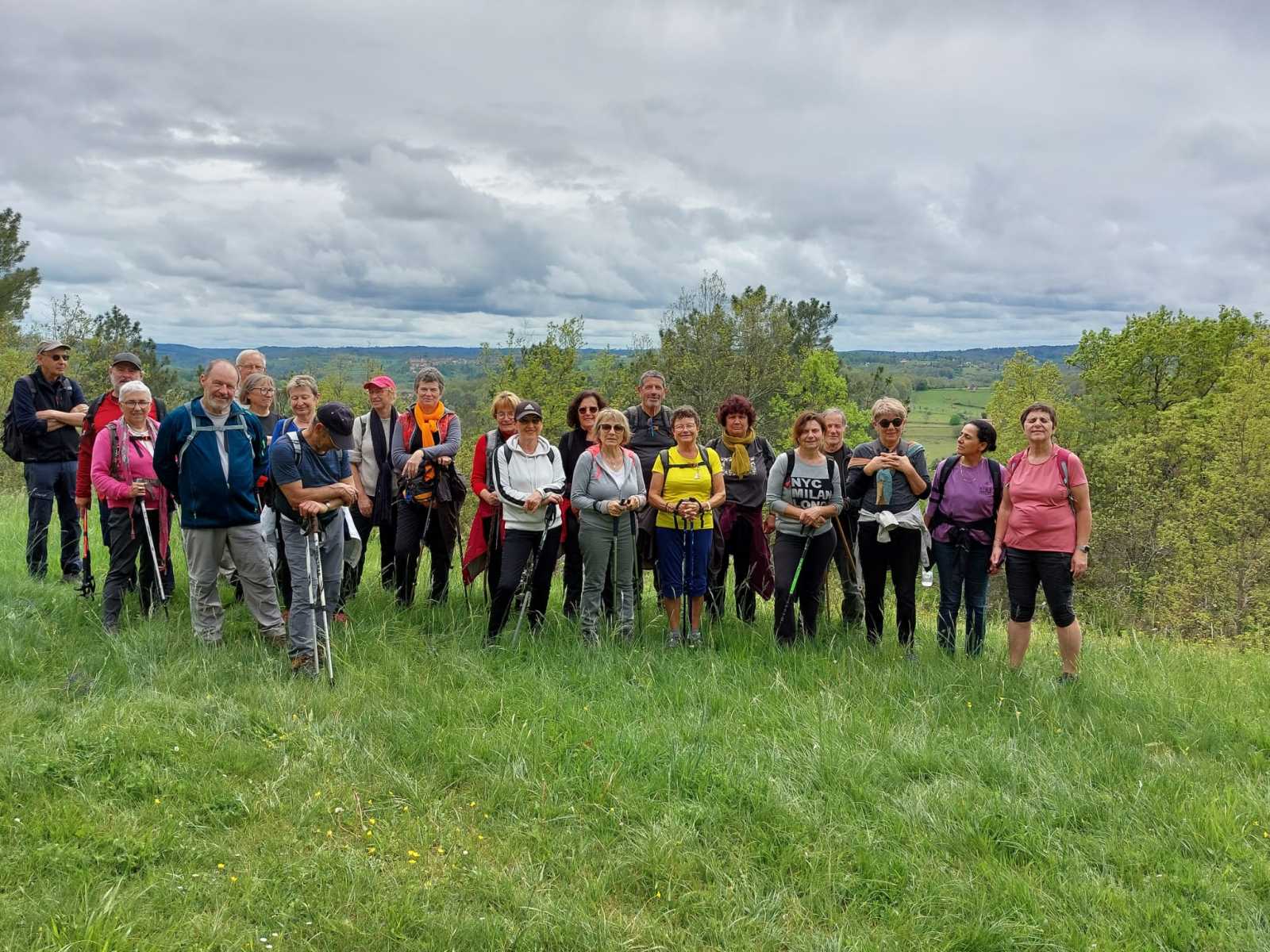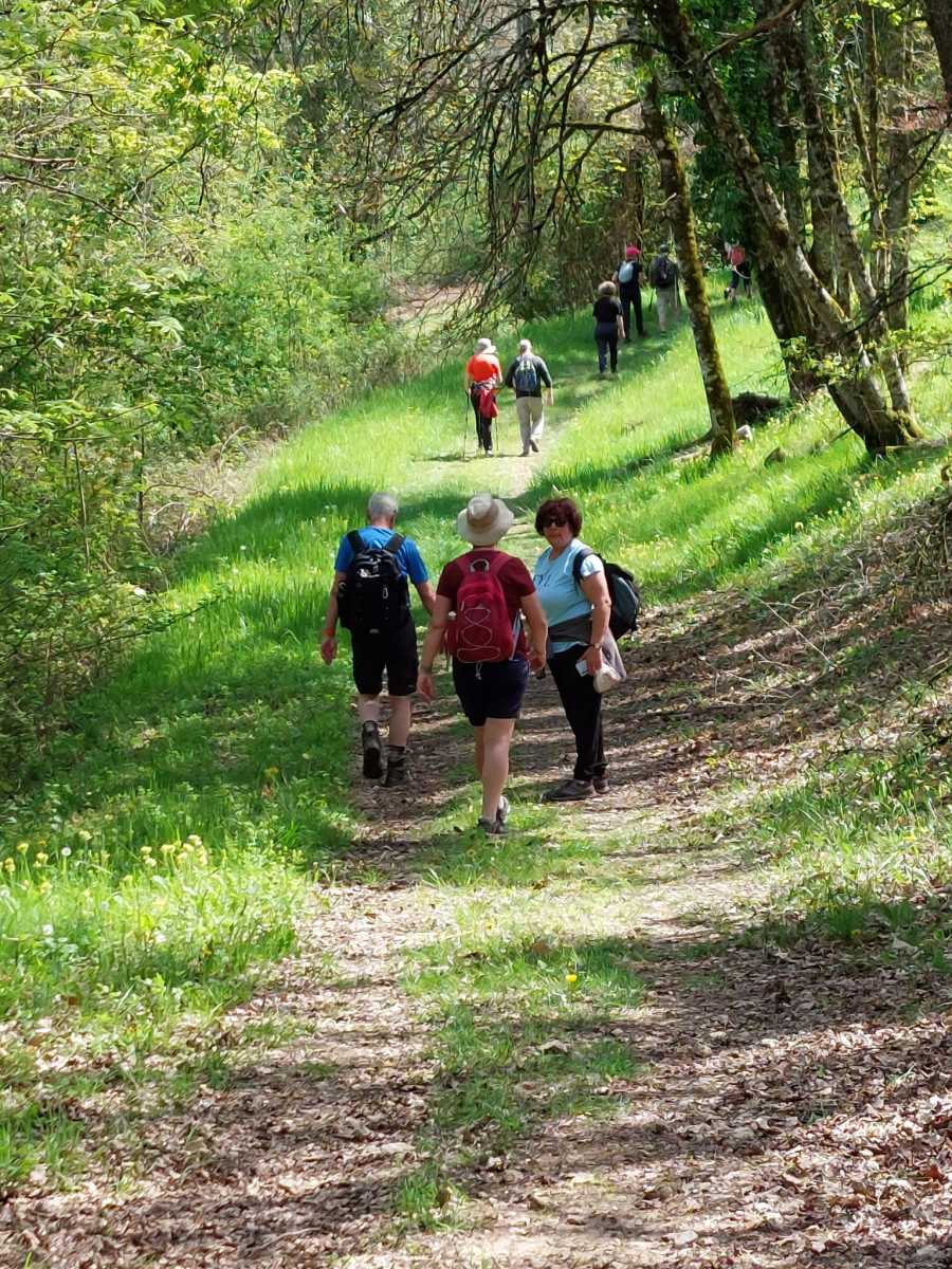 Cette boucle de 9 km a réuni 26 marcheurs. Quelques gouttes pas méchantes au départ, puis 20° et temps un peu lourd. Quelques côtes, terrain un peu gras et quelques passages étroits. Jolis paysages et beaux points de vue.